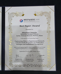 BEST PAPER AWARD WON BY UNIVERSITY OF IBADAN AND DURBAN UNIVERSITY OF TECHNOLOGY AT THE 2025 WEEF & GEDC INTERNATIONAL CONFERENCE AT DAEGU, REPUBLIC OF KOREA